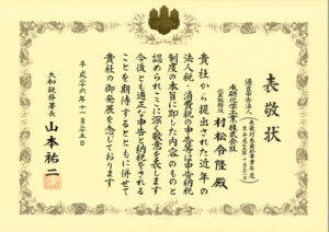 大和税務署より優良申告法人として表敬を受けました
